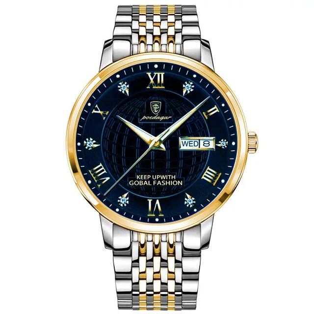 - Feature: STOP WATCH,Shock Resistant,Luminous,Auto Date,Complete Calendar,DIVER,Water Resistant,swim,Week Display,luminous hands